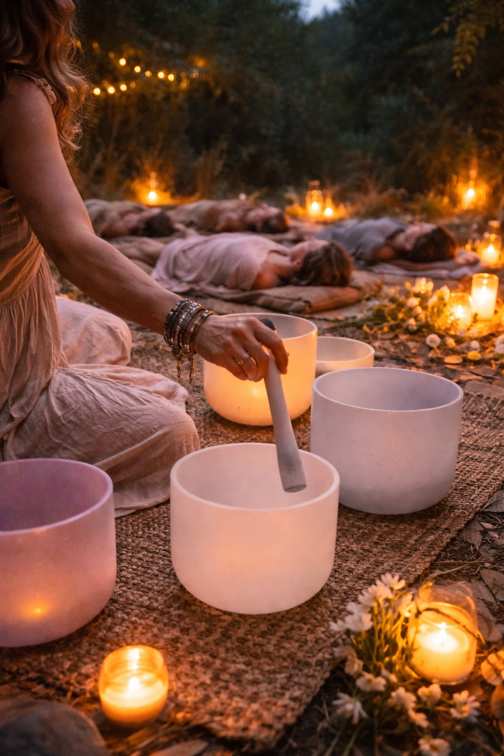 A gentle yet potent entry point. Best for those seeking restorative care, nervous system support, and a deeply held experience, with a full integration day that includes bodywork, sound healing, and spacious time to land.